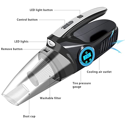 DFBUB Aspirapolvere Portatile, Aspirapolvere Multifunzionale Quattro in Uno 8Kpa Aspirapolvere Portatile Senza Fili Aspirapolvere per Auto Display Digitale Pompa d'Aria per Auto, Pulizia di Casa