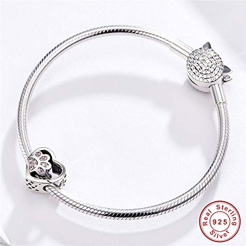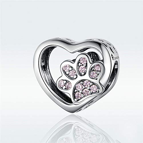 DFHTR Charm Braccialetto Perline Vuote Bracciale Originale In Argento Sterling 925 Simpatico Ciondolo A Forma Di Cuore Con Artiglio Di Gatto Rosa Per Le Donne Perline Con Impronta Di Animali Domestici