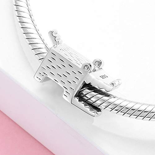 DFHTR Perline Vuote in Argento Sterling 925 Coccodrillo Quadrato con Bocca Grande Perline Animali Charms Adatti per Donna Bracciali Braccialetti Gioielli