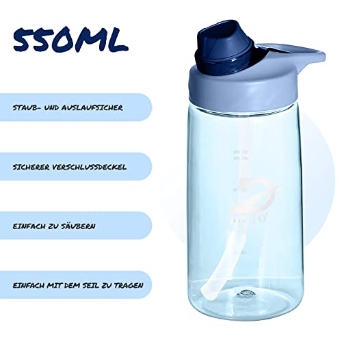 【BPA-FREE 550ml Bottiglia da bere per bambini】 La borraccia sportiva è realizzata in copoliestere Tritan di grado alimentare, ecologico e privo di BPA, BPS e ftalati. Le borracce sono robuste, durevoli e resistenti agli urti e sono le migliori borracce per grandi e piccini.