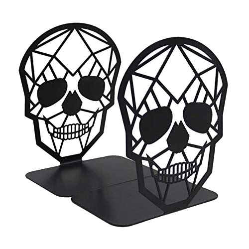 Dfsda Fermalibri ad alte prestazioni in metallo, fermalibri antiscivolo per mensole, con teschio nero per libri, CD (1 coppia/2 pezzi) nero
