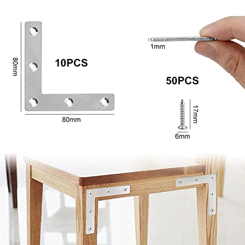 Dfuqanb 10 Pezzi Staffa angolare piatta a forma di L, Staffa Angolare Piatta, Angolari Piatta Gradi Supporti, Squadrette Angolar a Forma di L, per mobili in legno, armadi, tavoli e sedie