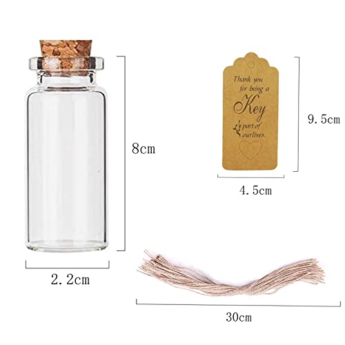 Cosa riceverai: 30 pezzi di mini bottiglie di vetro (circa 20 ml) e 30 pezzi di tappi di sughero, 30 pezzi di carta kraft vintage (con spago da 30 cm)