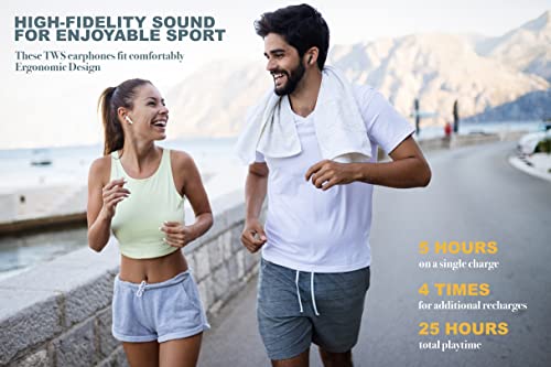 ✅ LEGGERI E SICURI: I nostri earphones wireless sono molto leggeri e compatti in quanto un auricolare bluetooth singolo pesa solo 3 gr e si connette automaticamente a tutti i dispositivi garantendo un utilizzo di 5 ore di ascolto musica mentre si è in studio, casa o ufficio. Le nostre cuffie in ear senza filo con cavo di ricarica Usb Type-C offrono un'ottima cancellazione del rumore.