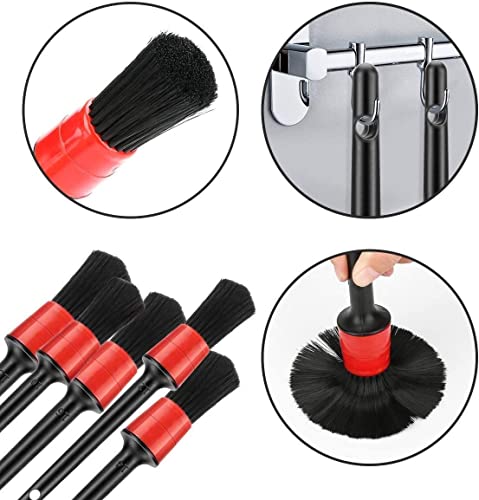 DGOSPSTIME Pennello Auto Spazzole,Pulizia Spazzole Macchina,Spazzole Pulizia Auto,Pennelli Detailing Auto Morbidi,Pennelli per Auto Detailing per Dettagli Auto con Manico in plastica (5Pcs)