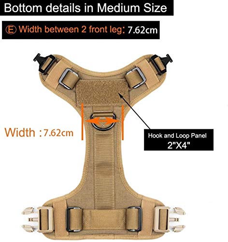 Pannello Hook&Loop -Tre strisce di 2.5cm di pannello Loop cucite su entrambi nella formazione. Un pannello quadrato del ciclo cucito sul petto anteriore, è possibile allegare molte patch per identificare il vostro cane