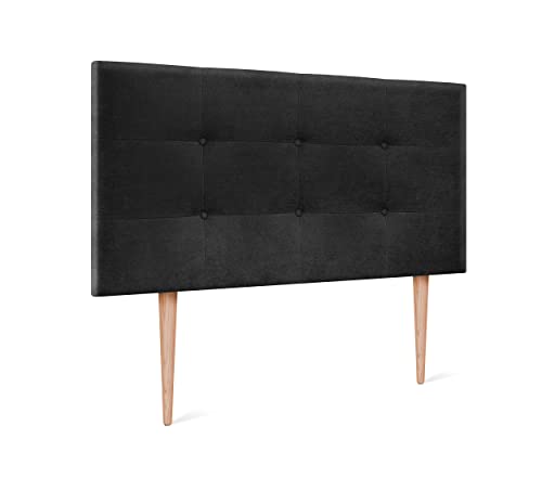 DHOME Testiera, Testiera imbottita per letto con spessore di 8 cm. Testiera imbottita ACUALINE Tessuto e similpelle. Testate da letto (Tessuto Nero, 105x115cm con Gambe (Letto 80/90/105))