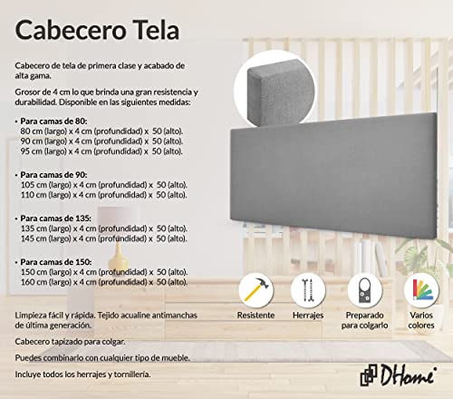 DHOME Testiera del letto in similpelle o tessuto AQUALINE Testiere in tinta unita Testiera imbottita Letto di lusso (Tessuto Grigio, 95cm (Camas 70/80/90))