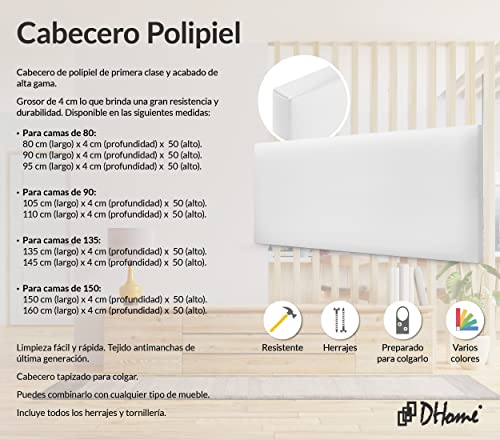 DHOME Testiera del letto in similpelle o tessuto AQUALINE Testiere in tinta unita Testiera imbottita Letto di lusso (Similpelle Bianco, 95cm (Camas 70/80/90))