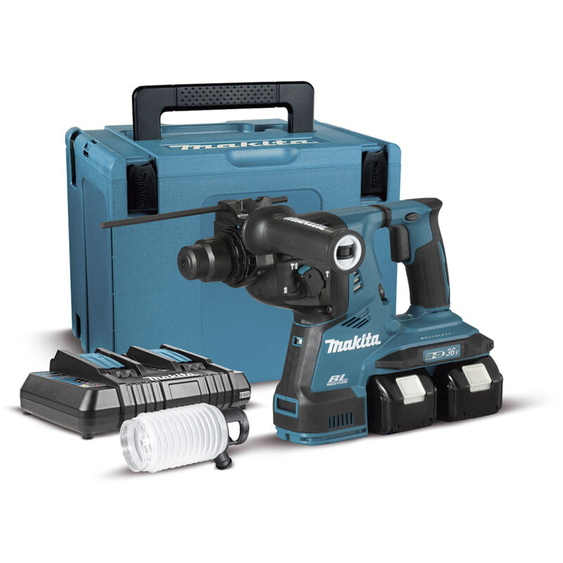 MAKITA DHR282PT2J BL Martello leggero a batteria 18Vx2 5,0 Ah LXT 28 mm Sistema di frizione elettronica AFT. Collegabile al sistema di autoaspirazione. Vantaggi per l'utente 3 modalità di lavoro: rotazione;