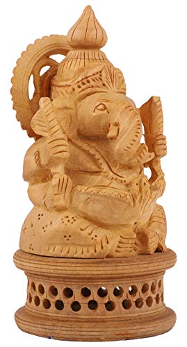 DHYANRSH - Idolo in legno esotico accattivante Lord Ganesha, realizzato a mano, altezza 10 cm
