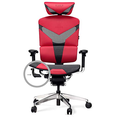 DIABLO V-Dynamic Sedia da ufficio ergonomica poltrona direzionale braccioli regolabili maglia finta pelle meccanismo oscillante selezione di colore (Cremisi)