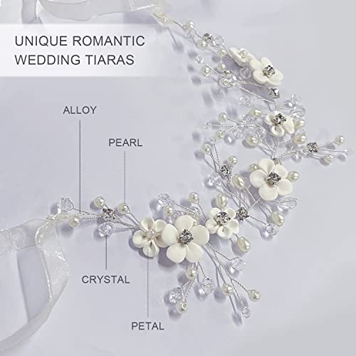【Materiale】 Il copricapo da sposa è composto da leghe, perle, cristalli e petali.È un bellissimo copricapo da sposa.