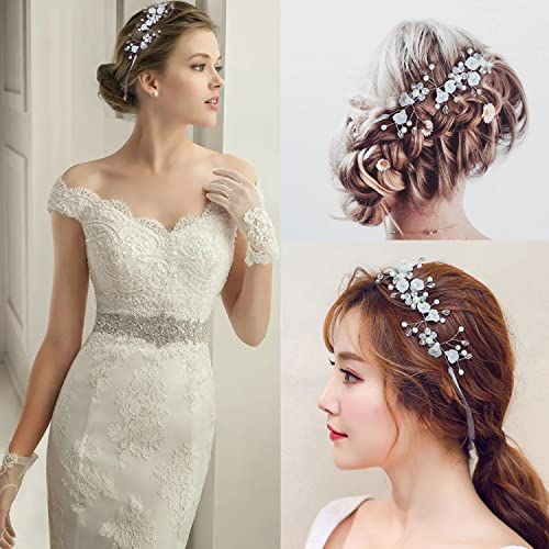 Diadema da sposa 1 pezzo accessori per capelli da sposa con motivo floreale, diadema in argento cristallo, adatto per anniversario di matrimonio, look romantico unico