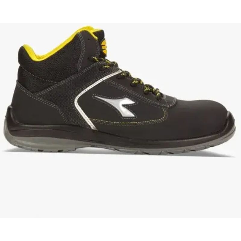 Calzature alte S3 di Nylon idrorepellente Action Nubuck Pull e PU. Punta multistrato 200J. Ultimo 11. Sottopiede K SOLE in poliuretano con ammortizzatore. Senza metallo. CE EN ISO 20345:2011
