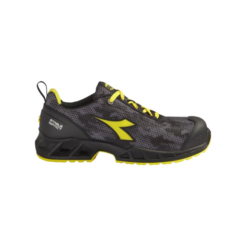 Calzatura di sicurezza bassa S3 in tessuto tecnico poliestere 350 gr/m² idrorepellente con tecnologia di ammortizzazione Stable Impact System. Highligths: Puntale in alluminio 200J. Calzata 11. Fodera Air Mesh con antiscalzante in microfibra, K-SOLE, plantare in PU foam estraibile, traspirante e con carboni attivi. Tomaia in Poliestere Intersuola PU espanso con tecnologia STABLE IMPACT SYSTEM. Battistrada PU compatto, antiabrasione.