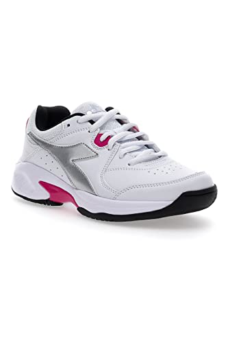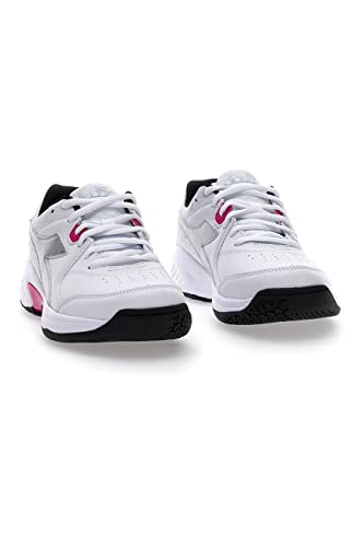 Diadora SMASH 5 W, Scarpe da Tennis, Donna, Multicolore (Bianco/Argento DD/Rosso Rodamina), 41 EU