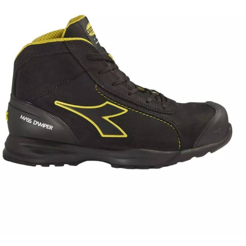 Calzatura di sicurezza mid-cut S3 in nubuck silk idrorepellente. Mass Damper Technology, puntale in alluminio 200J. Calzata 11. Fodera Air Mesh con antiscalzante in microfibra, K SOLE, film in TPU. Plantare anatomico estraibile in PU foam e carboni attivi. Protezione del tallone e della punta in TPU.
