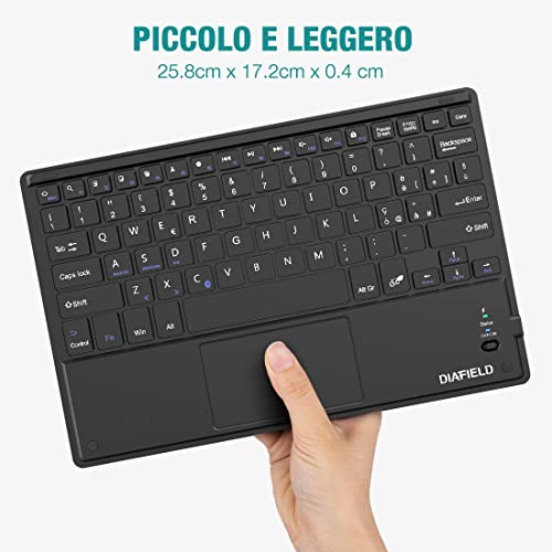 1 BY ONE Diafield Tastiera Bluetooth Ultra Sottile con Multi Touch Integrato Touch Pad e Batteria Ricaricabile per Android IOS e Windows, Tastiera Wireless, Nera