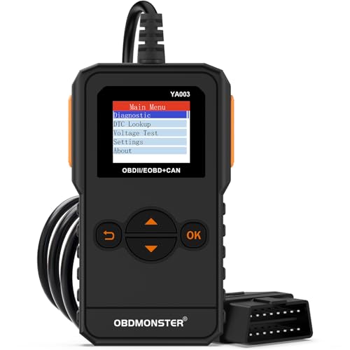 ✅【Design compatto】- Lo scanner diagnostico per auto è dotato di un cavo lungo 2,5 piedi e realizzato con un isolante flessibile molto spesso. Ci sono 4 pulsanti sullo scanner OBD2: Scorrere su/giù, entrare/uscire e pulsanti che interrogano rapidamente il numero di veicolo VIN e il codice di errore DTC.