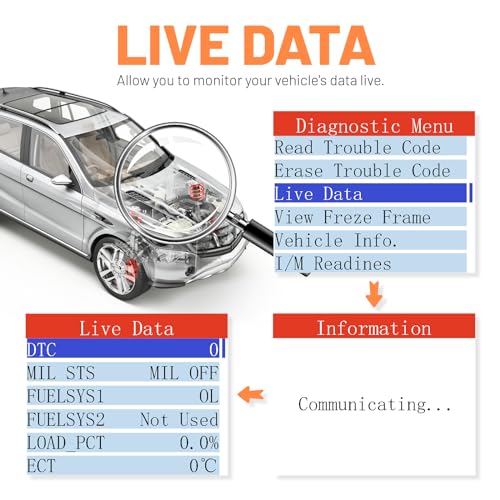 ✅【Multi-Funzioni】- Pratico lettore di codici OBD2 multi-funzioni diagnostica del motore caratteristiche built-in OBD2 DTC lookup libreria di ricerca, che aiutano a determinare la causa della luce del motore, leggere il codice, cancellare il codice, visualizzare il fermo immagine, I/M pronto, informazioni sul veicolo, 10 funzioni diagnostiche di base.