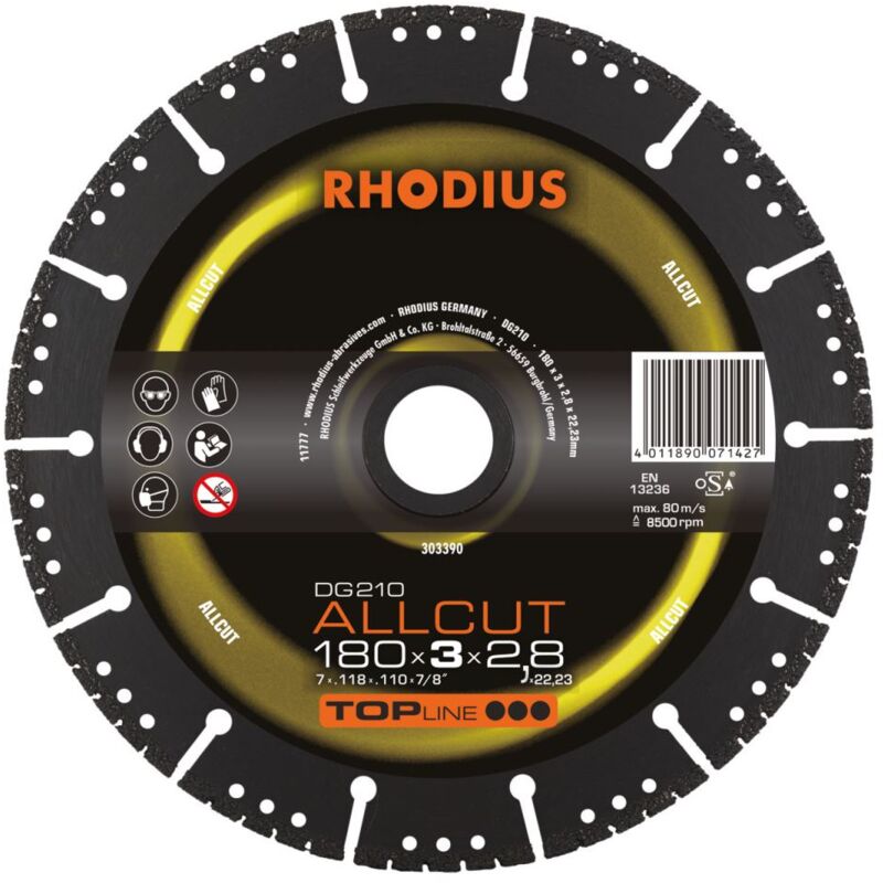 Con DG210 Allcut, l'utente tiene in mano un vero disco universale. Si convince con una costante potenza di separazione in una varietà di materiali. I fori di raffreddamento sotto i segmenti evitano di surriscaldare il nucleo in acciaio. Violo saldato. Adatto per tagli bagnati e asciutti.