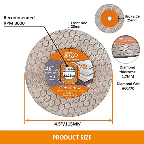 Lame per sega diamantata BGTEC, disco da taglio da 115 mm per piastrelle in ceramica, gres porcellanato, marmo, pietra artificiale, esagono bilaterale