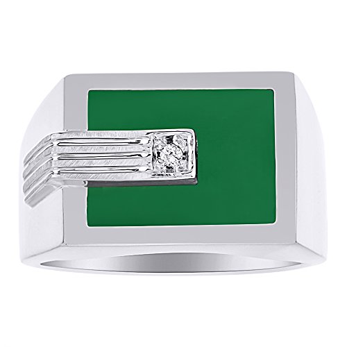 Diamante & onice verde anello in argento Sterling placcato oro giallo o
