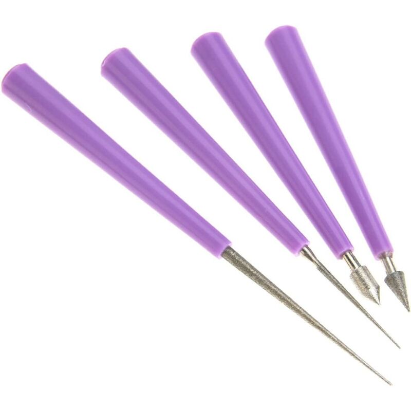 Materiali: manici in acciaio inossidabile e acrilico. Questo set di quattro alesatori include tutte le forme e le dimensioni di cui hai bisogno. Utensili in acciaio con intarsio diamantato per allargare i fori delle perline e rimuovere le bave prima dell'incordatura. Utilizzato per limare, allargare e rimuovere le bave dai fori delle perline. Può essere utilizzato su perle di vetro, plastica, metallo, legno, ecc.
