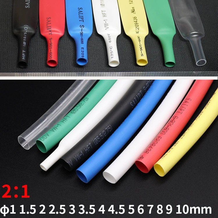 2M Diameter 1 1.5 2 2.5 3 3.5 4 4.5 5 6 7 8 9 10mm Heat Shrink Tube 2:1 Shrink Ratio Polyolefin Insulated Cable Sleeve