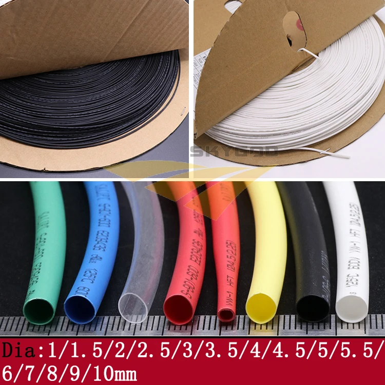 5M Diameter 1 1.5 2 2.5 3 3.5 4 4.5 5 6 7 8 9 10mm Heat Shrink Tube 2:1 Shrink Ratio Polyolefin Insulated Cable Sleeve