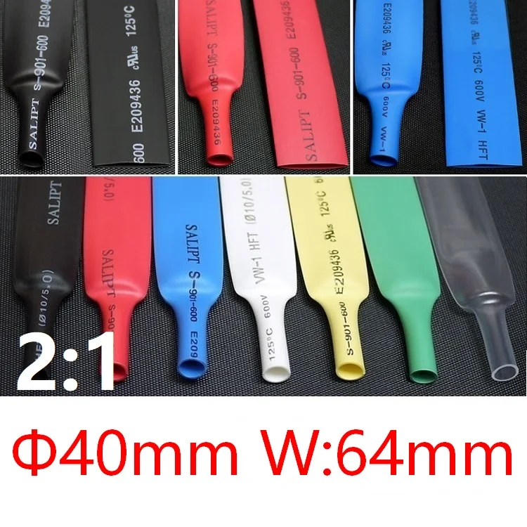 Diameter 40mm Width 64mm Heat Shrink Tube 2:1 Ratio Polyolefin Wire Wrap Protector Insulated Line Connector Repair Cable Sleeve