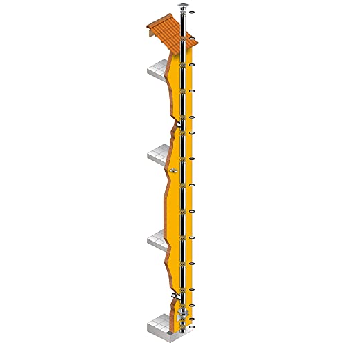 Kit Fumi Diametro 100 con Doppia Parete in Acciaio Inox DW25, Altezza 10,66m, Canna Fumaria Coibentata Doppia Parete con Lana Di Roccia 100 | Brico Kit