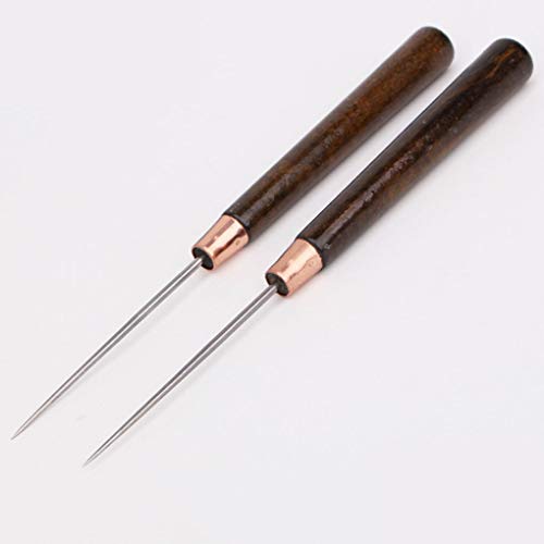 DIAMOEN 2 Pezzi di Legno Solido Manico in Pelle cubo di Dati Punteruolo Craft Panno di Cucitura Strumenti di Riparazione per Cucire