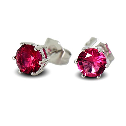 Blue Diamond Club - oro bianco 9 kt, donna orecchini in rubino rosso cristallo da 7 mm 9 K GF