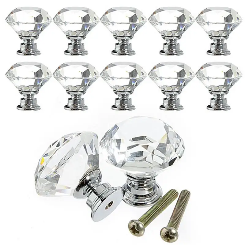 31mm Diamond Crystal Glass Alloy Door Drawer Cabinet Wardrobe Pull Handle Knobs New Home Accessories
