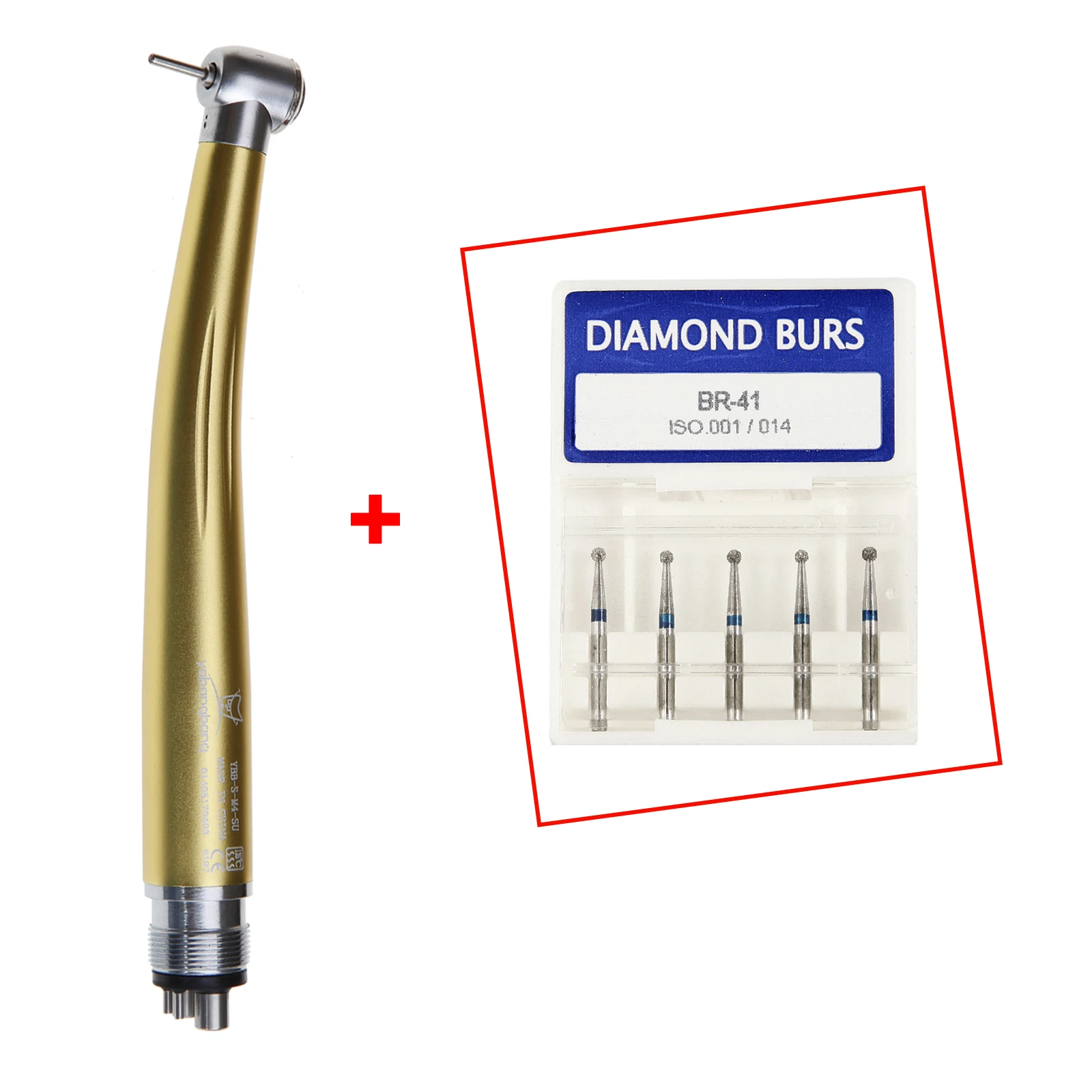 5 Pcs Diamond Burs with Dental High Speed Handpiece 4 Hole gold color Push Button Standard Head for NSK