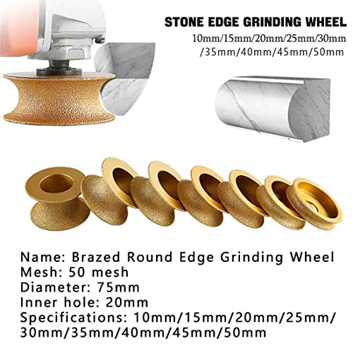 1Pc Edge Diamond Grinding Wheel,Grinding Wheel Stone Edge Grinding Polishing Wheel,Angle Grinder Wheels Cup,Round Dry Vacuum Brazed Diamond Grinding Wheel Demi-Bullnose Edge,Leveling,Chamfering (20mm)
