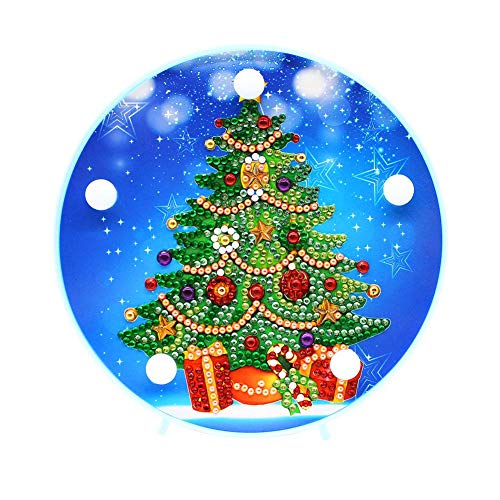 DIY 5D Diamond Painting Kit con Luci a LED Bianche Calde Luce Notturna per Bambini Lampada Decorativa per Soggiorno Camera da Letto Decorazioni Natalizie (Albero di Natale)