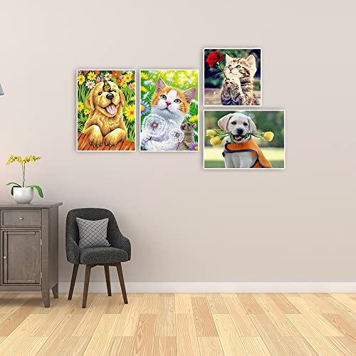 Diamond Painting 4 Pezzi 30x40 cm Puzzle Diamanti 5D Cane Labrador Diamond Painting Cani Golden Mosaici Gatti Pittura Diamante Gatti Diamond Painting Animali Quadri da Dipingere Numerati per Casa