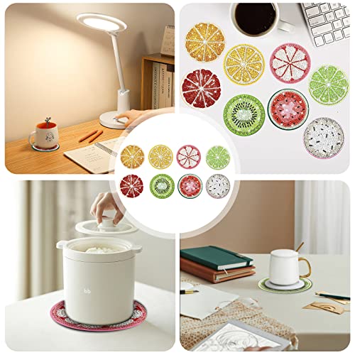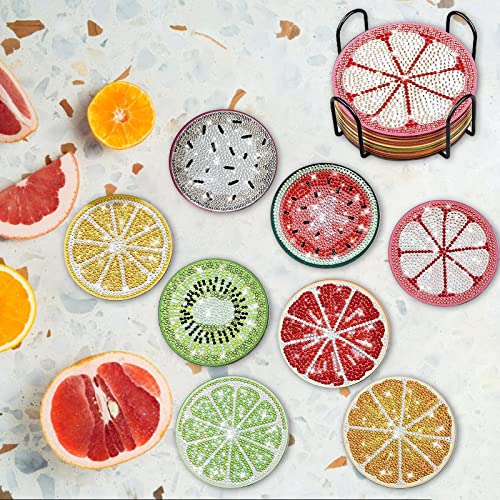 Diamond Painting Sottobicchieri con supporto: YOYIAG 8 pezzi Dolce Frutta Diamond Painting Coasters, sottobicchieri 5D fai da te con pittura a diamante con strumenti per adulti, bambini, adolescenti