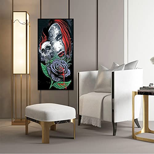 Diamond Painting Square Drill 40x75 cm Diamond Painting Skull Cranio Bellezza Rose Vampiro Puzzle 5D Teschio Pittura con Numeri Diamond Painting Gothic Teschio Painting by Numbers Puzzle di Perline