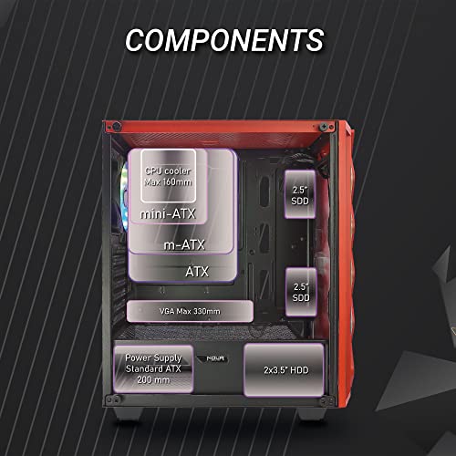 Noua Diamond C9 Rosso Case ATX per PC Gaming 0.5MM SPCC 2*USB3.0/2.0 con Ventola RGB Addressable 5V e Strip LED Rainbow Pannello Laterale Vetro Temperato (AxPxL: 465x410x215 mm)