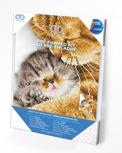 Set completo con tela stampata di alta qualità, telaio, pietre rotonde Diamond Dotz (+ 20%), penna, ciotola, cera e istruzioni dettagliate con immagini in 16 lingue (lingua italiana non garantita)