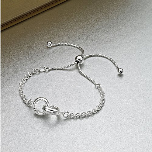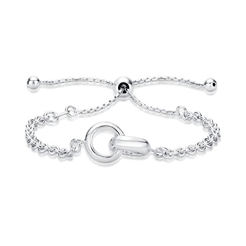 Diamond Treats Bracciale in Argento da Donna, in ARGENTO STERLING 925. Bracciale dall'Elegante Design con anelli intrecciati e catenina.Questo Bracciale Regolabile è il Regalo Perfetto per le Donne.