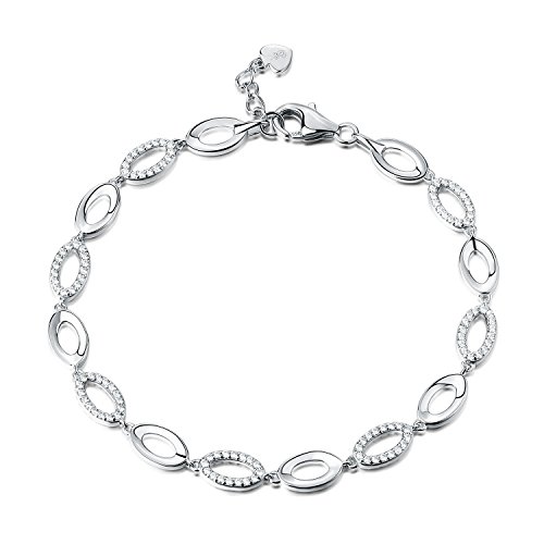 Diamond Treats Braccialetto Donne,solido ARGENTO 925 STERLING Anelli Ovali Zircone Cubico Scintillante. Misure 16,5 cm - 20,3 cm.Lussuoso Braccialetto Donna Regalo Gioielleria Perfetto Lei
