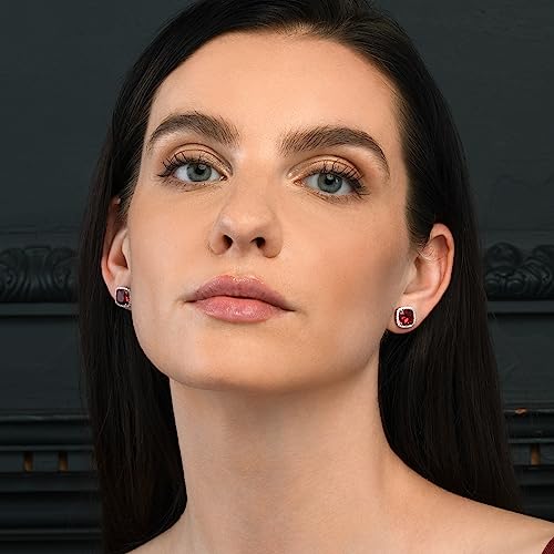 Diamond Treats Orecchini Donna in Argento Sterling 925, Orecchini Taglio Cuscino con Pietre Zirconi Rosso Rubino, Orecchini Rossi Donna in Argento 925 con una Confezione Regalo