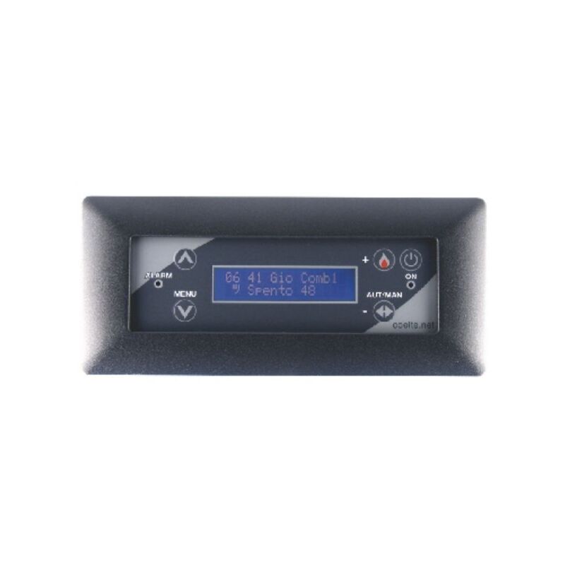 Composto da 5 tasti, un segnalatore acustico, display alfanumerico, ingresso per sonda ambiente. Base: 190 mm - Altezza: 85 mm - Profondità: 42 mm. (DianFlex)