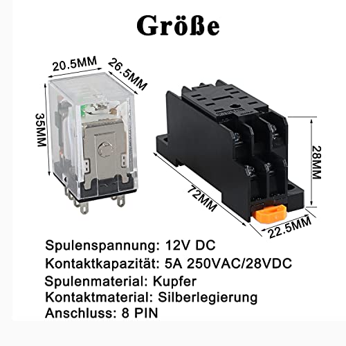 DIANQI Relè elettromagnetico 12 V DC 5 A bobina relè di potenza 8 pin 2NO 2NC HH52PL MY2 Commutatore con spia luminosa con presa per guida