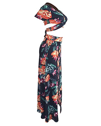 DianShao Vestito Lungo Donna Corti Maniche Gonna Abito da Floreali Due Pezzi Senza Schienale